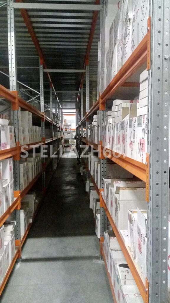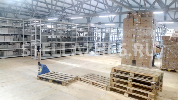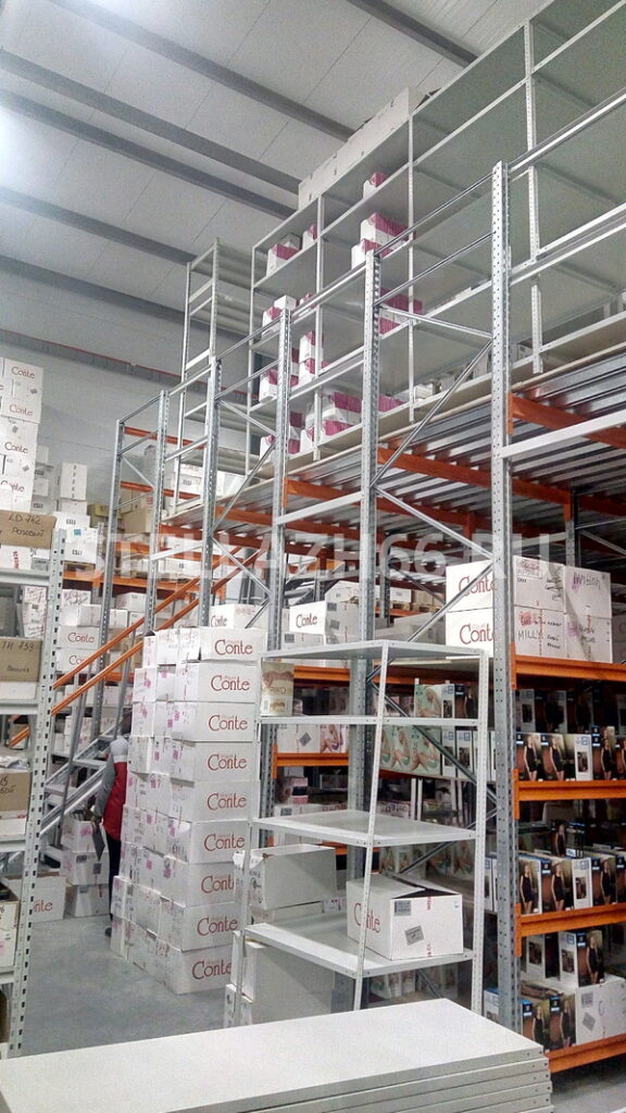 Заказчик поставил задачу — увеличить емкость площади склада в два раза, при этом желая удешевить проект за счет использования уже имеющихся средне-грузовых стеллажей. Мы предложили :