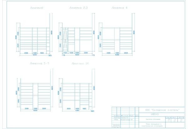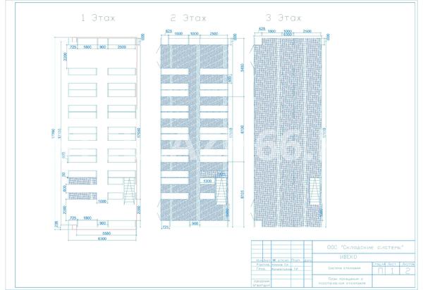 Размеры: Д18000 х Ш6300 х В8000 на базе фронтальных стеллажей