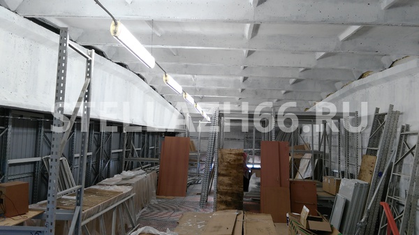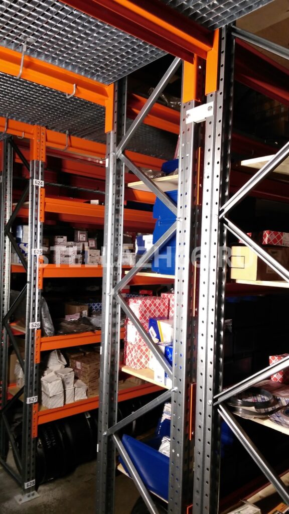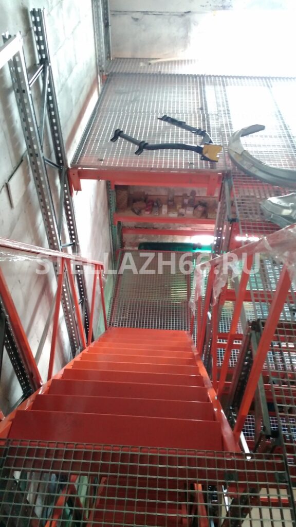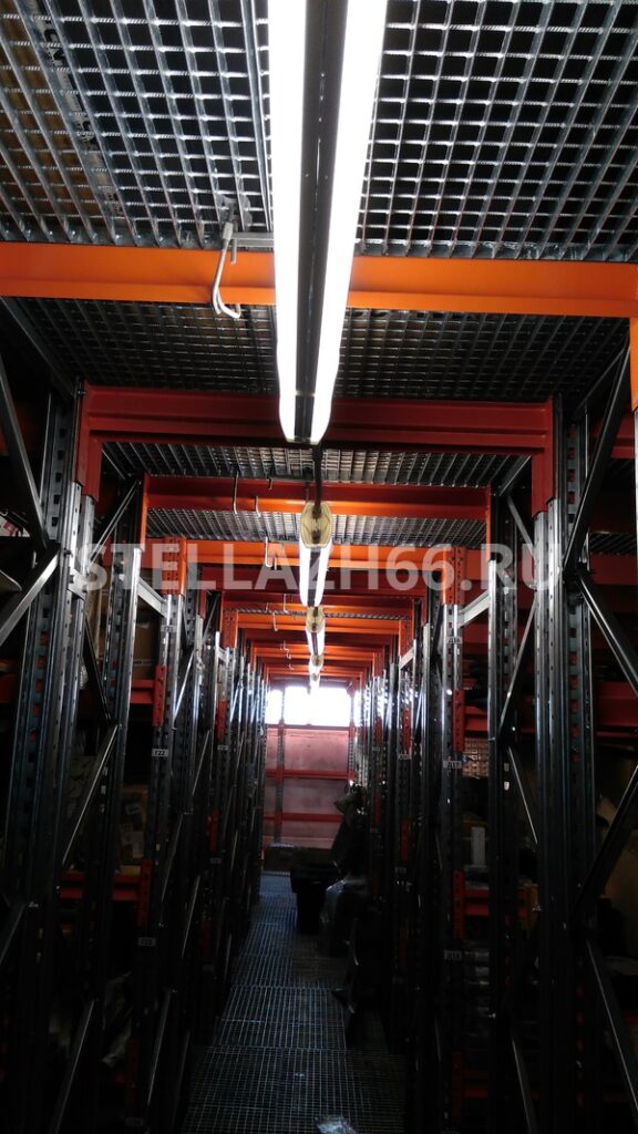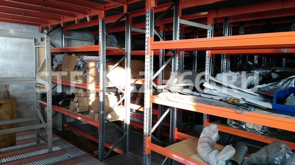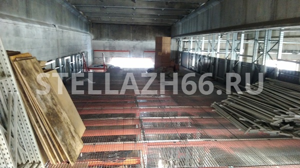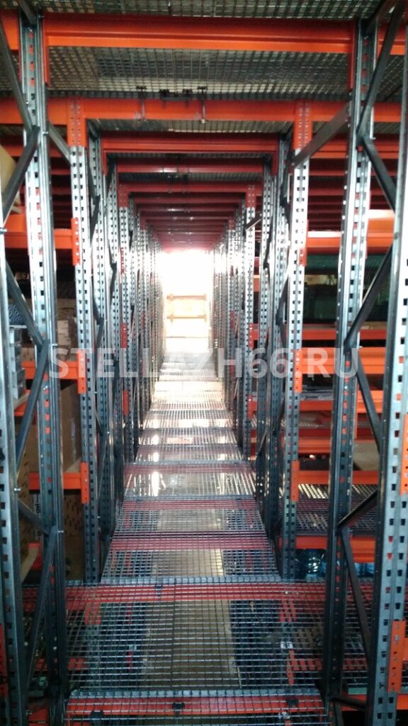 Материал настила полок — фанера 15мм, перекрытия — оцинкованный решетчатый сварной настил.