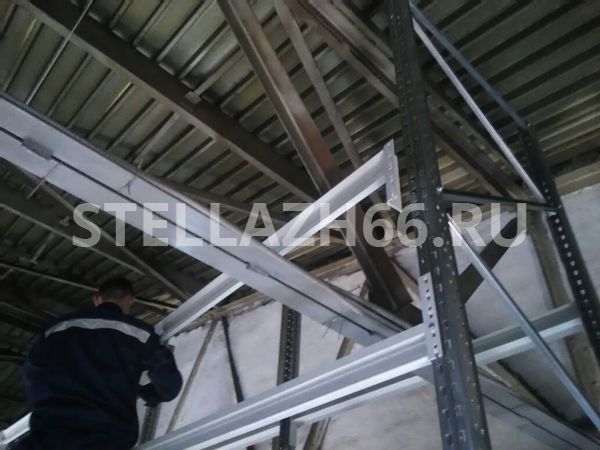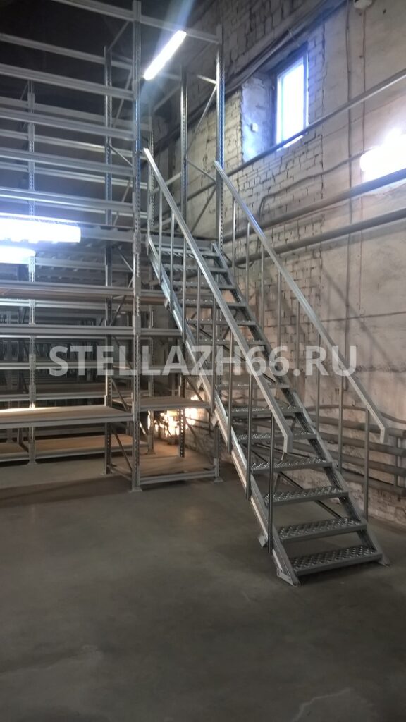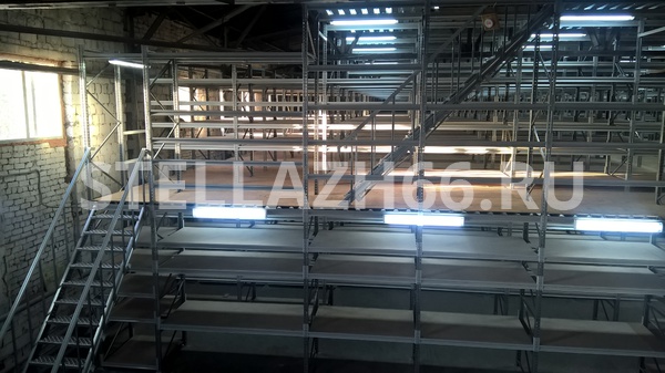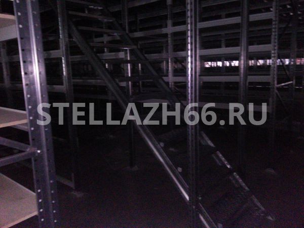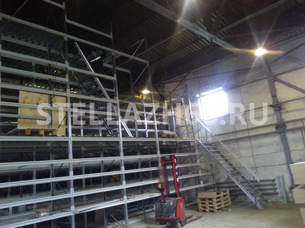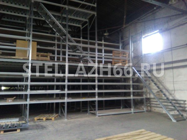 Мезонин имеет 5 уровней хранения на первом этаже, 4 уровня хранения на втором этаже и напольное хранение на третьем этаже.
