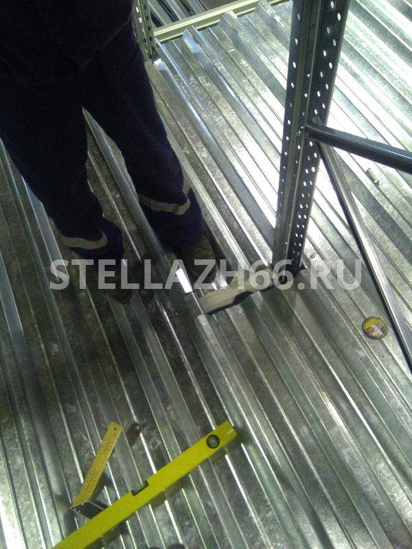 Межэтажное перекрытие – из двух слоев (профнастил Н44 0,7мм +фанера IV*IV 1525*1525*15мм) с нагрузкой до 300кг на м2.