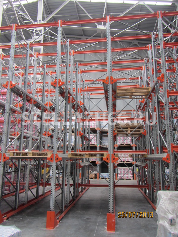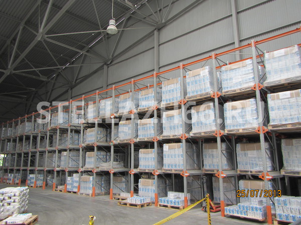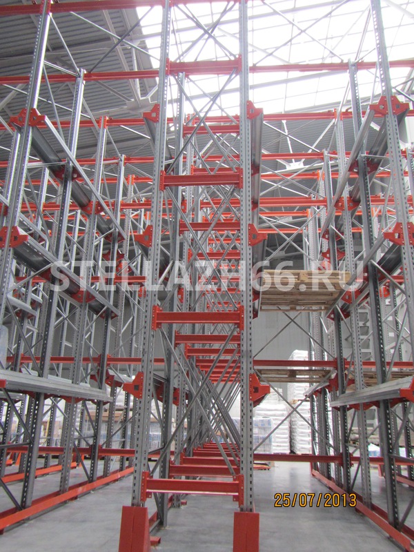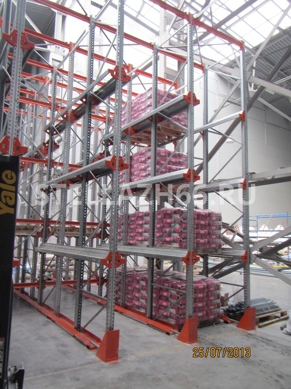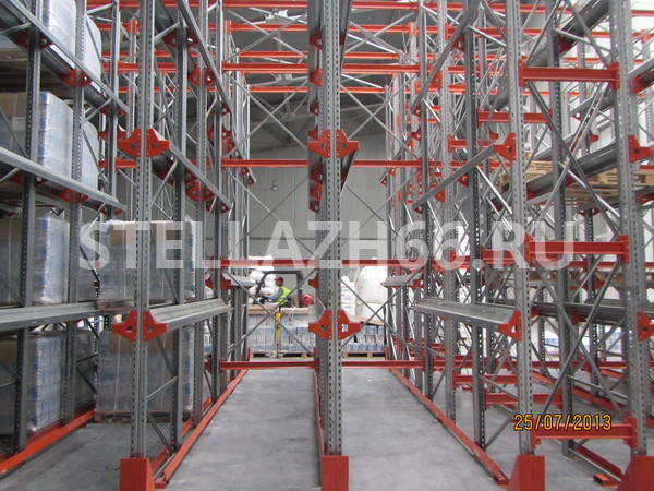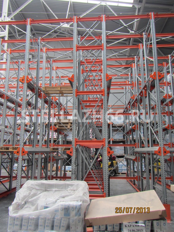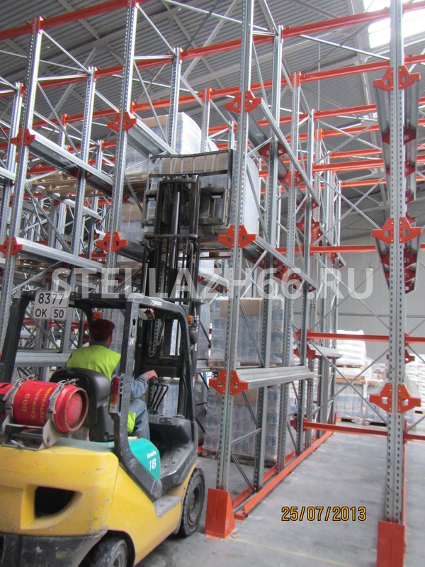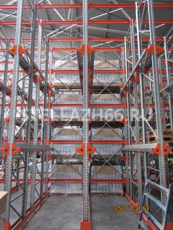 Набивной (глубинный) стеллаж — обслуживание с двух сторон: с одной стороны 3 ярусов хранения, с другой 4.