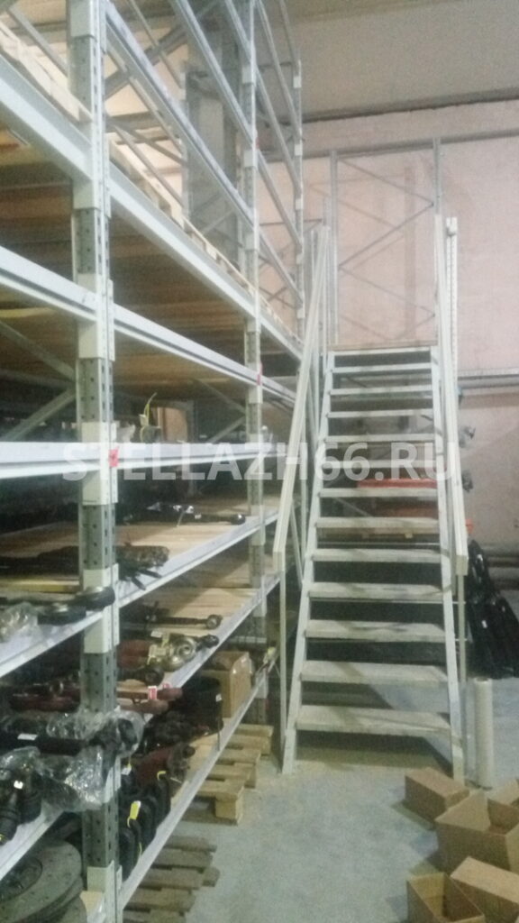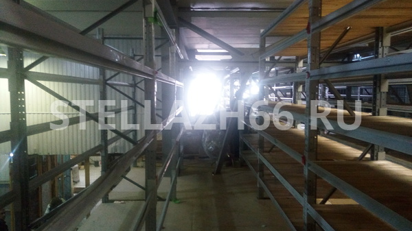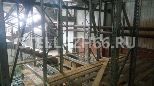 Задача была разобрать существующий мезонин, перенести и собрать в другой конфигурации (на новом складе), при этом дощатый пол переложили и настелили фанеру 15 мм.